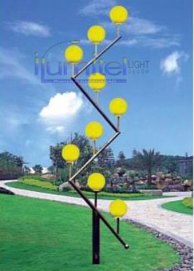 Poste Decorativo, design moderno com altura útil entre 3 a 5 metros. Para engastar no solo, fabricado em tubo de aço SAE 1010-1020, atendendo as normas NBR-8158/14744 da ABNT. Com seção cilíndrica de diâmetros variados, unidas por solda, Galvanizados a fogo e ou com pintura em epóxi. (Acompanha globo leitoso para lâmpada Vapor de Sódio de 150Watts).